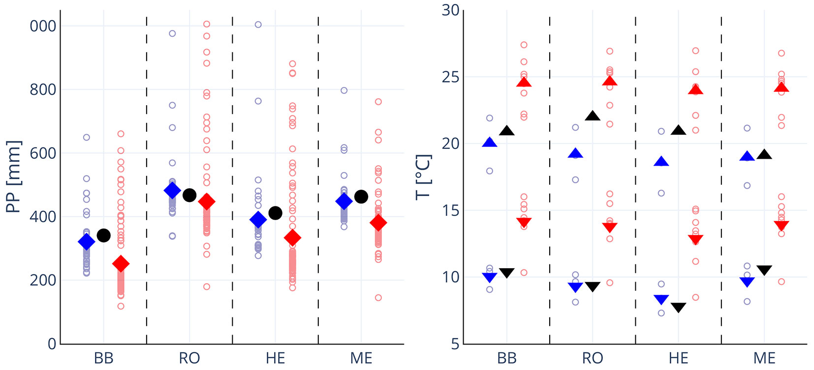 Tab. 2 - Comparison of growing season mean temperature (Tmean, °C) and sum of precipitation (PP, mm - April 1 to September 30).