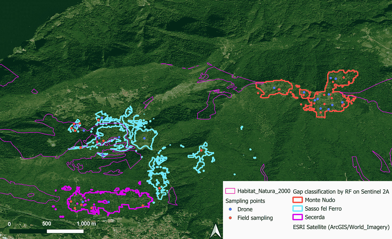 Tab. 2 - Summary of the structure and composition of regeneration from drone observation.